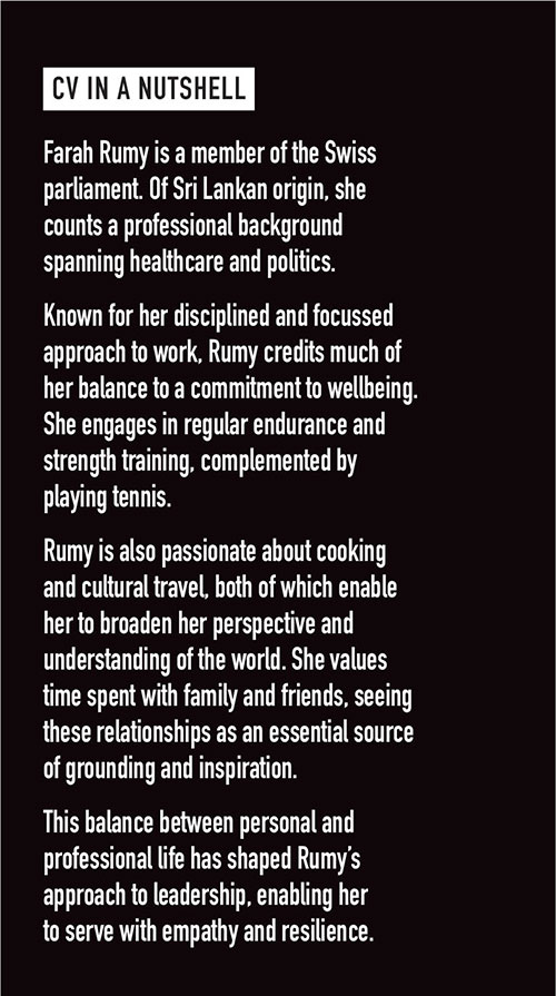 Since December 2023, I’ve been serving in the Swiss National Council, and am currently one of the youngest members of parliament and the first elected representative in Swiss history with Sri Lankan heritage.